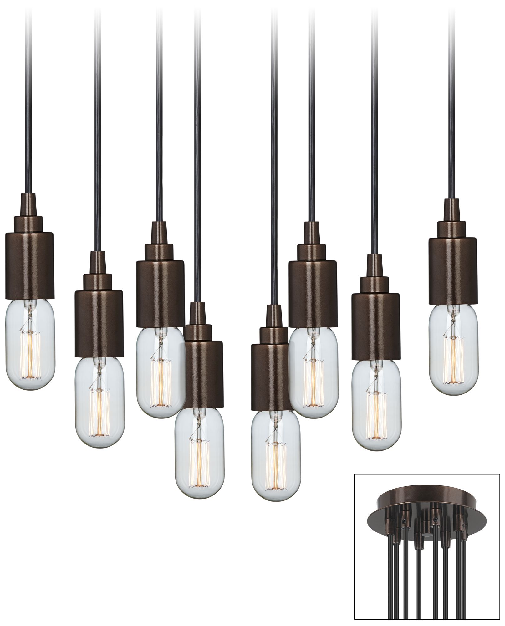 7-Light Edison Bulb LED Multi Light Pendant in Black for ... from images.beautifulhalo.com A wide variety of edison bulb pendant light options are available to you, such as lighting solutions service, design style, and material. Edison incandescent bulbs base type. Incandescent lamps make light by using electricity to heat a thin strip of material (called a filament) until it gets hot enough to glow. Bakelite multi bulb plumbing pipe chandelier. Pendant light shades for kitchen. Edison bulbs pendant light retro chandelier country dinning room ceiling lamp. In all the pics, when the light is on, i am so aware of the bulb and not the fixture. Refresh your lighting with this industrial style mini pendant, perfect for vintage or eclectic decor styles.